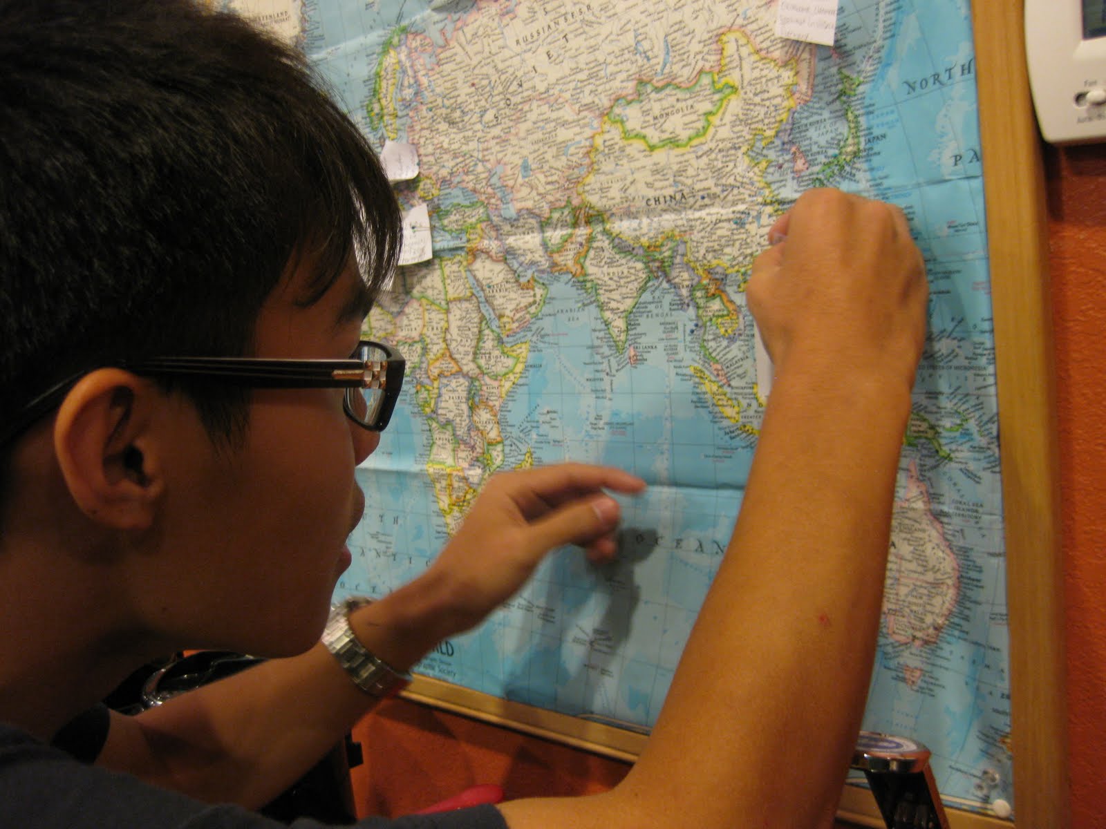 He asks, "Where do we live; can I put Taiwan on here?" |